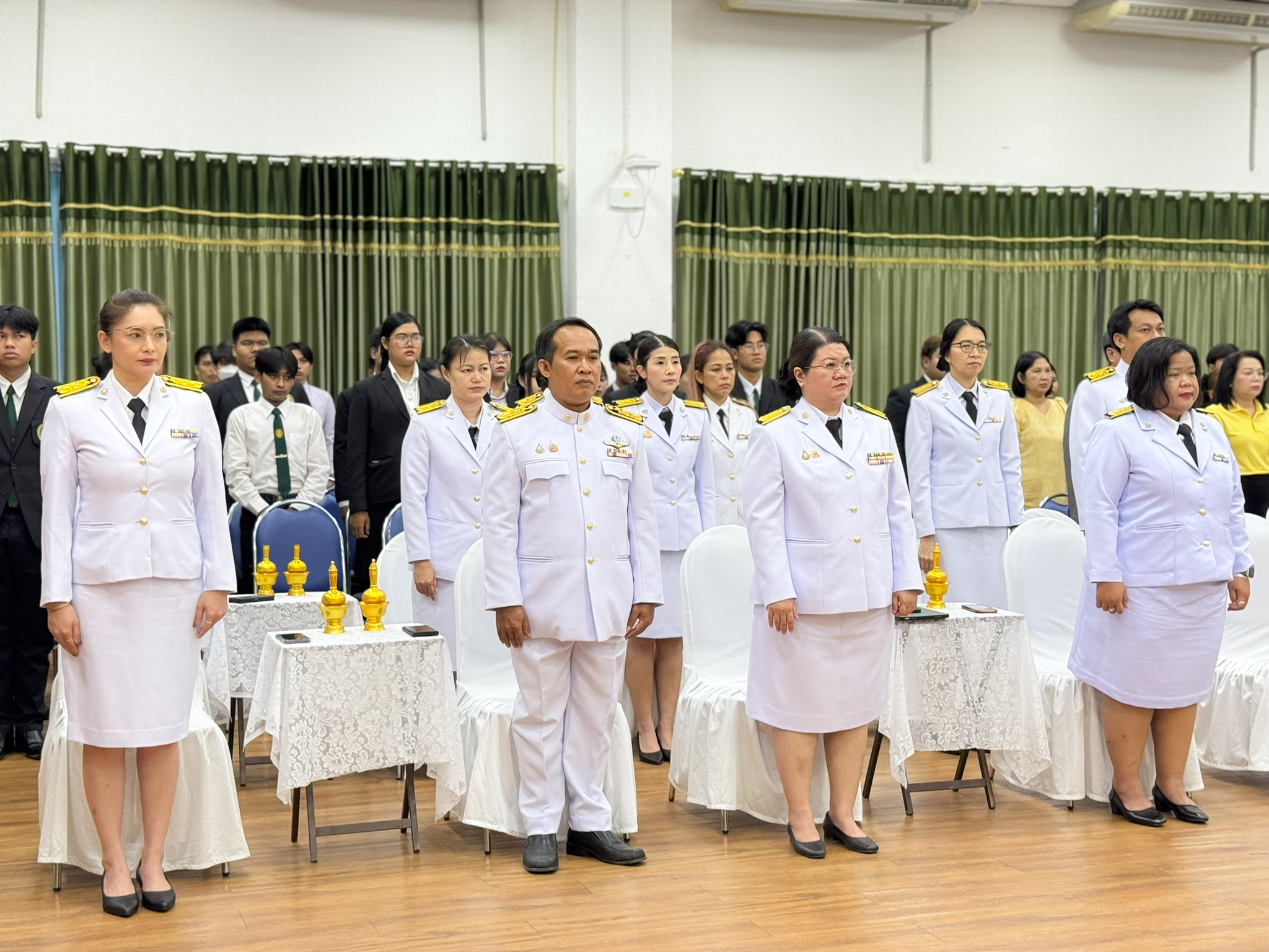 วันที่ 10 ตุลาคม 2568 อาจารย์ภูริพัศ เหมือนทอง ผู้อำนวยการสำนักวิทยบริการและเทคโนโลยีสารสนเทศ มหาวิทยาลัยราชภัฏนครสวรรค์ พร้อมด้วยคณะผู้บริหารและบุคลากร ร่วมพิธีน้อมรำลึกในพระมหากรุณาธิคุณ เนื่องใน “วันนวมินทรมหาราช” คล้ายวันสวรรคตพระบาทสมเด็จพระบรมชนกาธิเบศร มหาภูมิพลอดุลยเดชมหาราช บรมนาถบพิตร โดยมีผู้ช่วยศาสตราจารย์ ดร.ไชยรัตน์ ปราณี อธิการบดี เป็นประธานในพิธีในการวางพวงมาลา และกล่าวน้อมรำลึก จัดโดย สำนักศิลปะและวัฒนธรรม ณ ห้องประชุมพระบาง ชั้น 4 อาคารเฉลิมพระเกียรติฯ มหาวิยาลัยราชภัฏนครสวรรค์