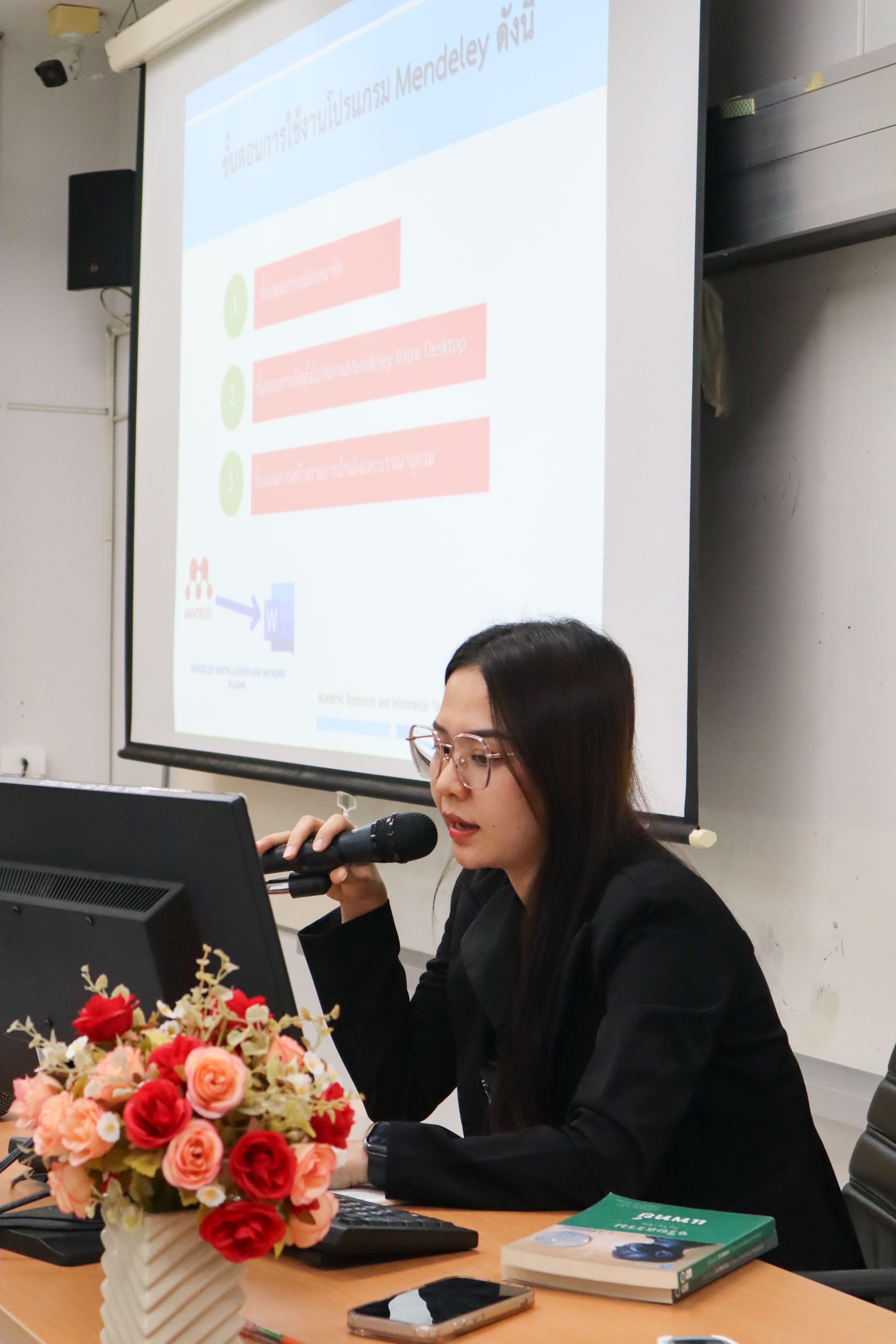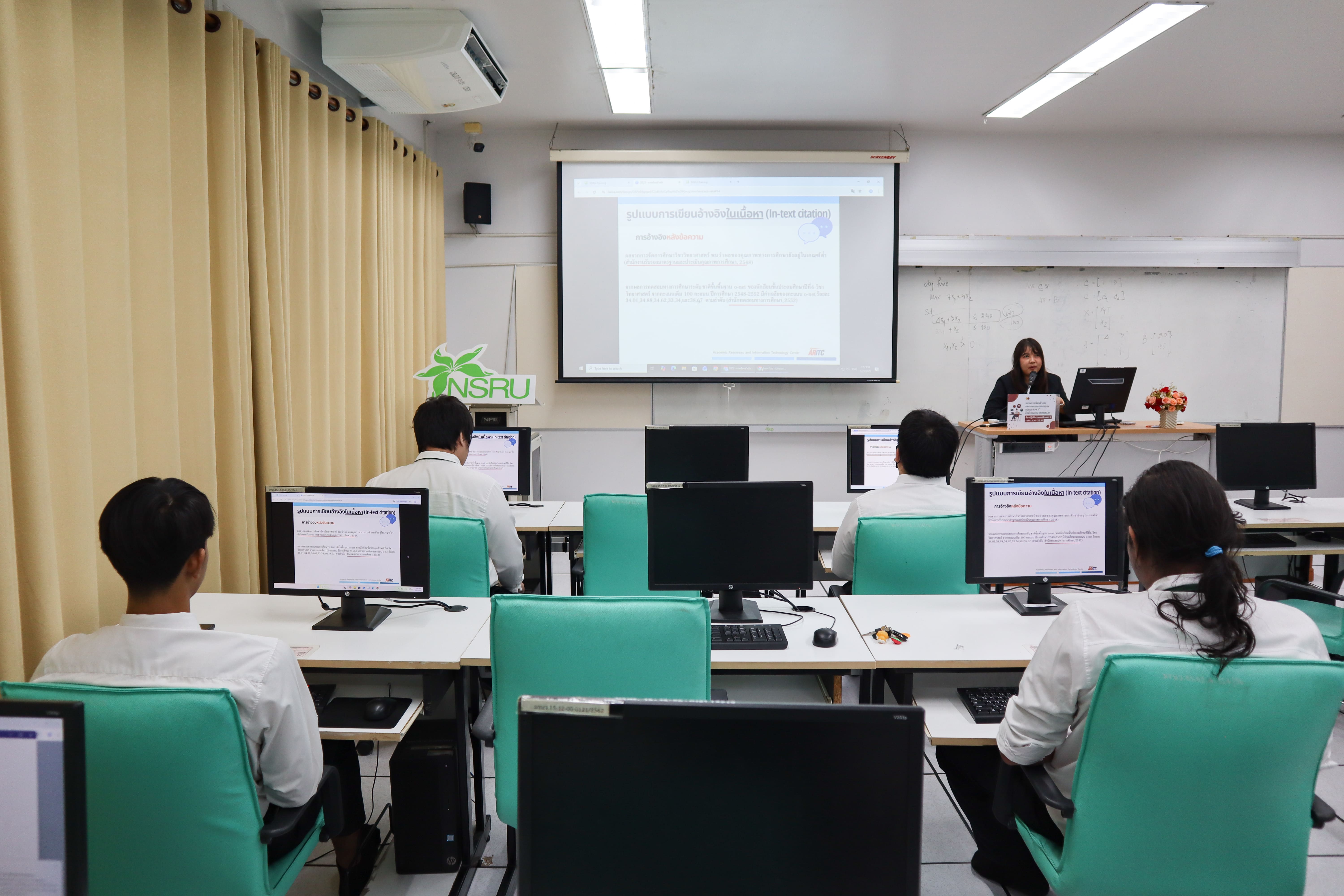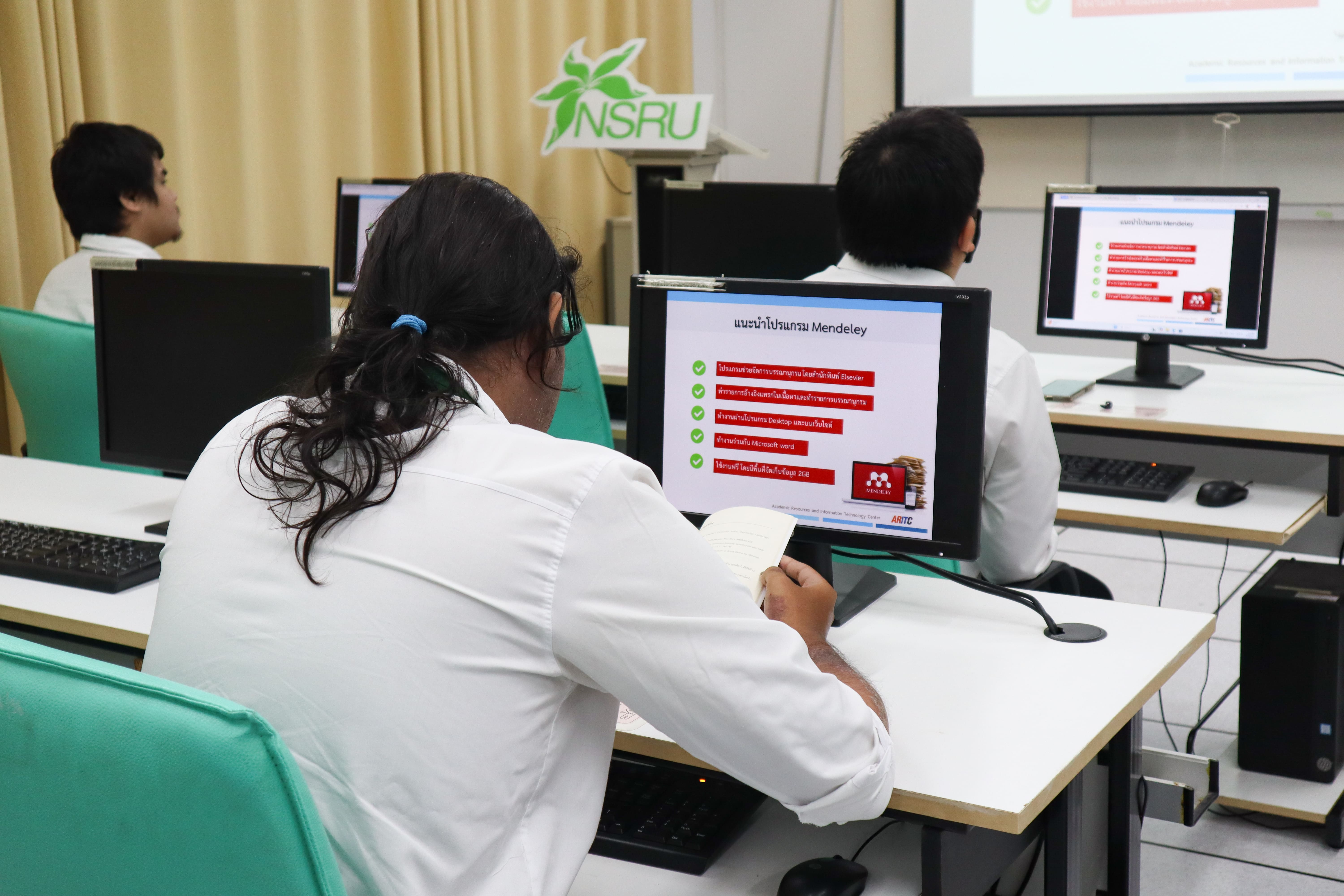 วันที่ 25 มีนาคม 2569 สำนักวิทยบริการและเทคโนโลยีสารสนเทศ มหาวิทยาลัยราชภัฏนครสวรรค์ จัดอบรมเชิงปฏิบัติการ "การเขียนอ้างอิงและรายการบรรณานุกรม รูปแบบ APA 7th ด้วยโปรแกรม Mendeley" ให้แก่นักศึกษา โดยมี นายกษิดิศ ประมวลกมล นักวิชาการโสตทัศนศึกษา น.ส.กาญจนา ทองไชย และ น.ส.ภัทราพร วงษ์น้อย บรรณารักษ์ เป็นวิทยากรดำเนินการอบรมพร้อมให้นักศึกษาฝึกปฏิบัติจริง