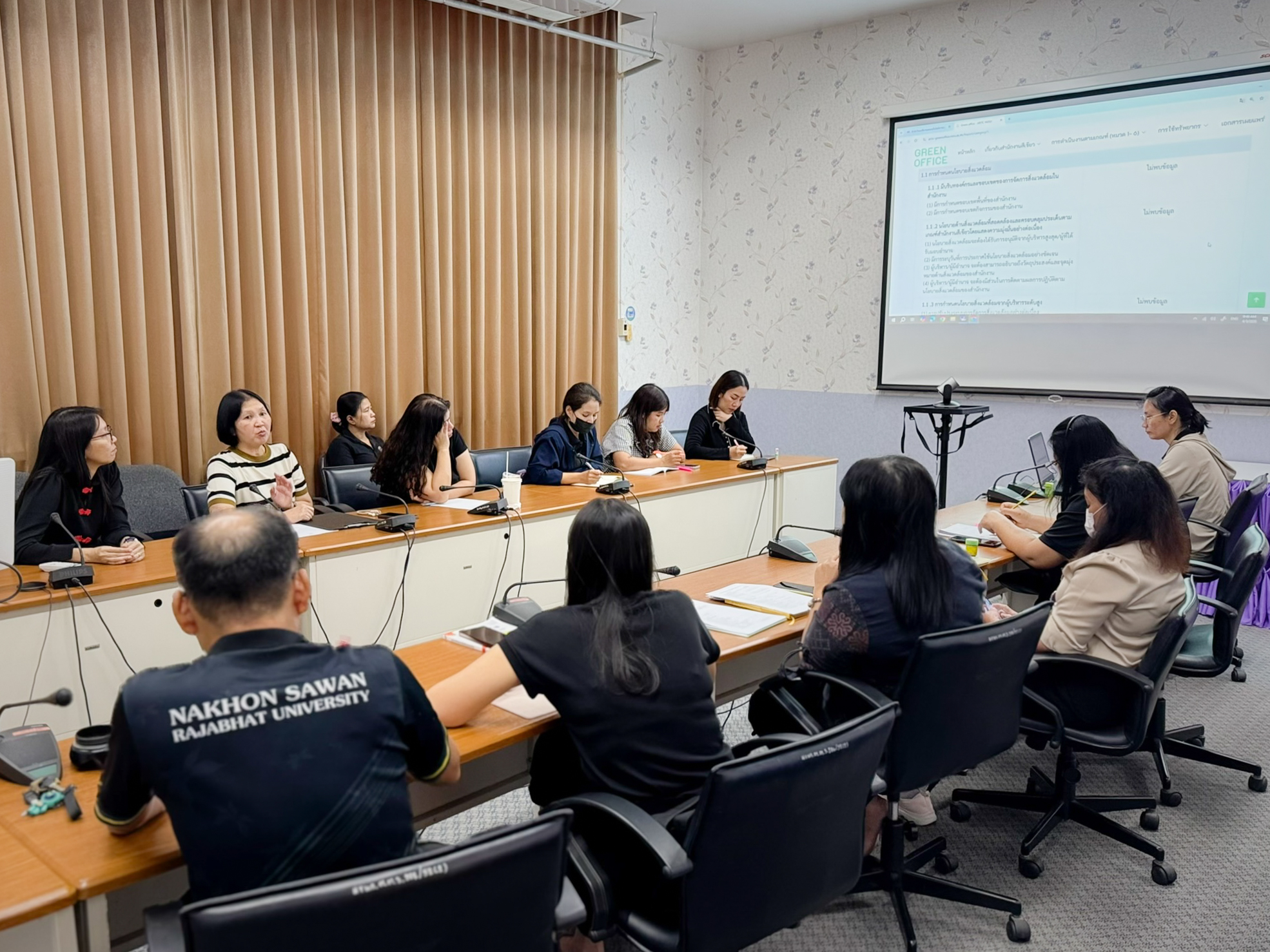 วันที่ 3 เมษายน 2569 ผู้ช่วยศาสตราจารย์ชุณษิตา นาคภพ รองผู้อำนวยการ สำนักวิทยบริการและเทคโนโลยีสารสนเทศ มหาวิทยาลัยราชภัฏนครสวรรค์ เป็นประธาน การประชุมติดตามผลการดำเนินงาน และหารือแนวทางการดำเนินงานโครงการสำนักงานสีเขียว (Green Office) ประจำปี พ.ศ. 2569 ร่วมกับคณะกรรมการดำเนินงานที่เกี่ยวข้อง เพื่อให้การจัดเก็บรวบรวมข้อมูลเป็นไปในทิศทางเดียวกัน พร้อมรับฟังและหาแนวทางการแก้ไขปัญหาในส่วนของการรายงานผลเกณฑ์การประเมินคุณภาพสำนักงานสีเขียว ทั้ง 6 หมวด ณ ห้องประชุมราชพฤกษ์ ชั้น 1 อาคารเฉลิมพระเกียรติฯ มหาวิทยาลัยราชภัฏนครสวรรค์