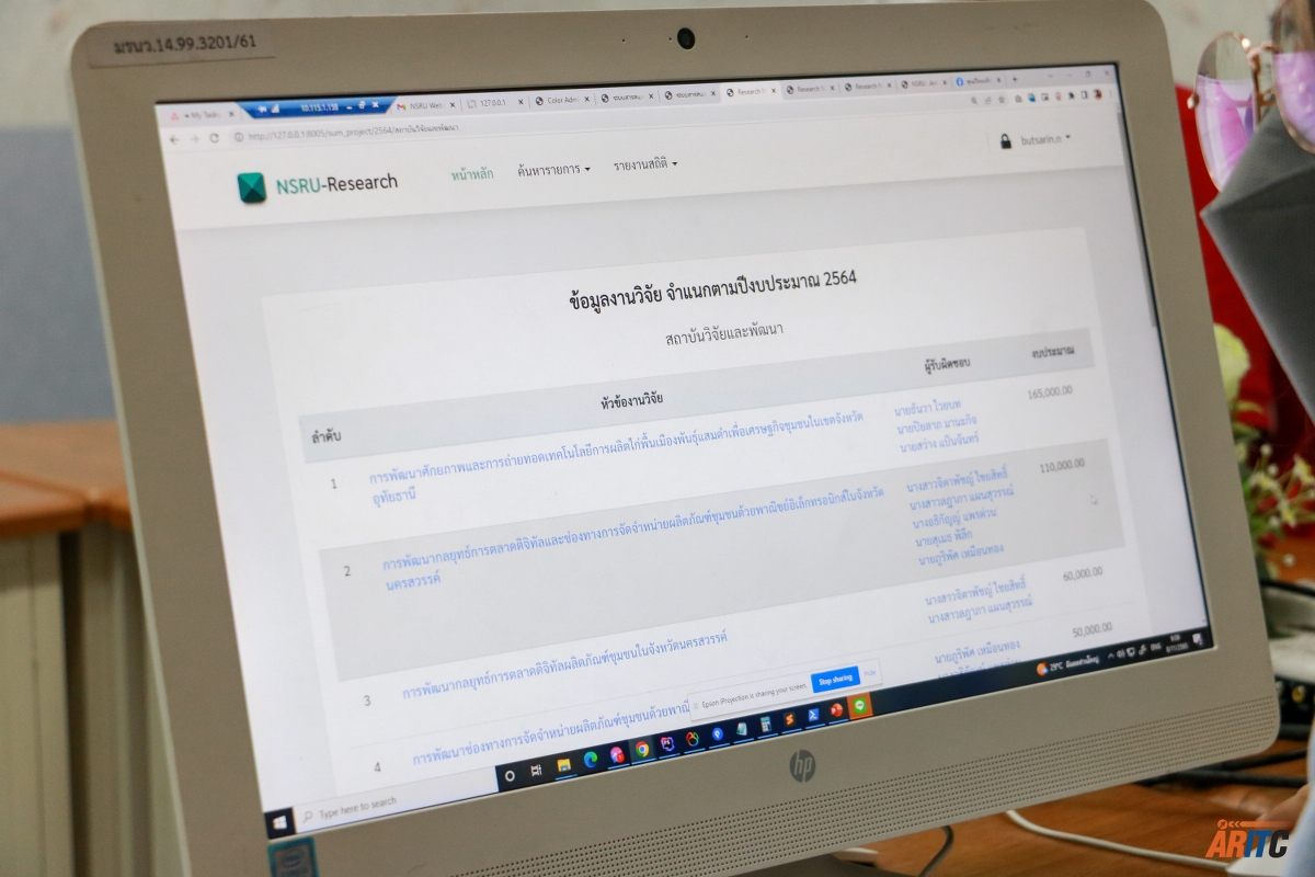วันที่ 8 พฤศจิกายน 2565 ผู้ช่วยศาสตราจารย์พงษ์ศักดิ์ ศิริโสม ผู้อำนวยการสำนักวิทยบริการและเทคโนโลยีสารสนเทศ เป็นประธานการประชุมติดตามการพัฒนา “ระบบบริหารจัดการงานวิจัย” มหาวิทยาลัยราชภัฏนครสวรรค์ ร่วมกับ ผู้ช่วยศาสตราจารย์ ดร.สมบูรณ์ นิยม ผู้อำนวยการสถาบันวิจัยและพัฒนา พร้อมด้วยบุคลากรผู้รับผิดชอบข้อมูลและที่เกี่ยวข้อง เพื่อนำเสนอผลการดำเนินงาน รวมถึงตรวจสอบความถูกต้องครบถ้วนของข้อมูล ให้สอดคล้องกับวัตถุประสงค์การใช้งาน และเพื่อการบริหารจัดการงานวิจัยของมหาวิทยาลัยฯ ได้อย่างมีประสิทธิภาพ ณ ห้องประชุมราชพฤกษ์ ชั้น 1 อาคารเฉลิมพระเกียรติฯ มหาวิทยาลัยราชภัฏนครสวรรค์